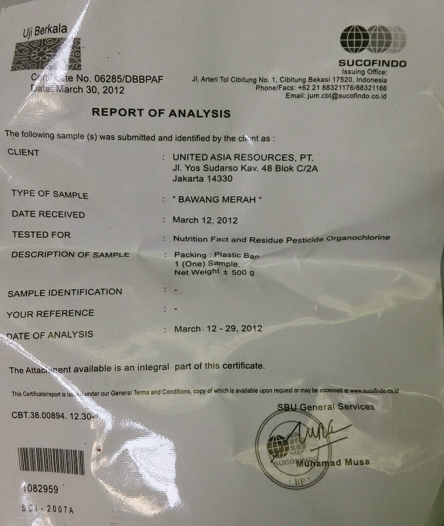 | Sertifikat Analisa (CoA) Bawang |